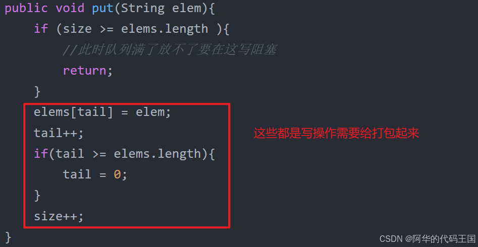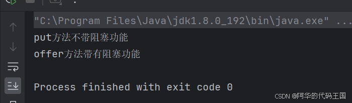 其中它们的入队列有两种方法put(自带阻塞效果)offer(不带有阻塞效果) 下面我们举例一种