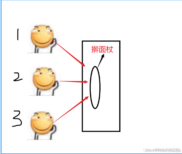 假设,每个滑稽老铁拿到擀面杖,擀了一个皮,包了一个饺子,在这个过程中,滑稽老铁会争夺擀面杖(锁竞争),虽然比单线程快,但是效率还是很低