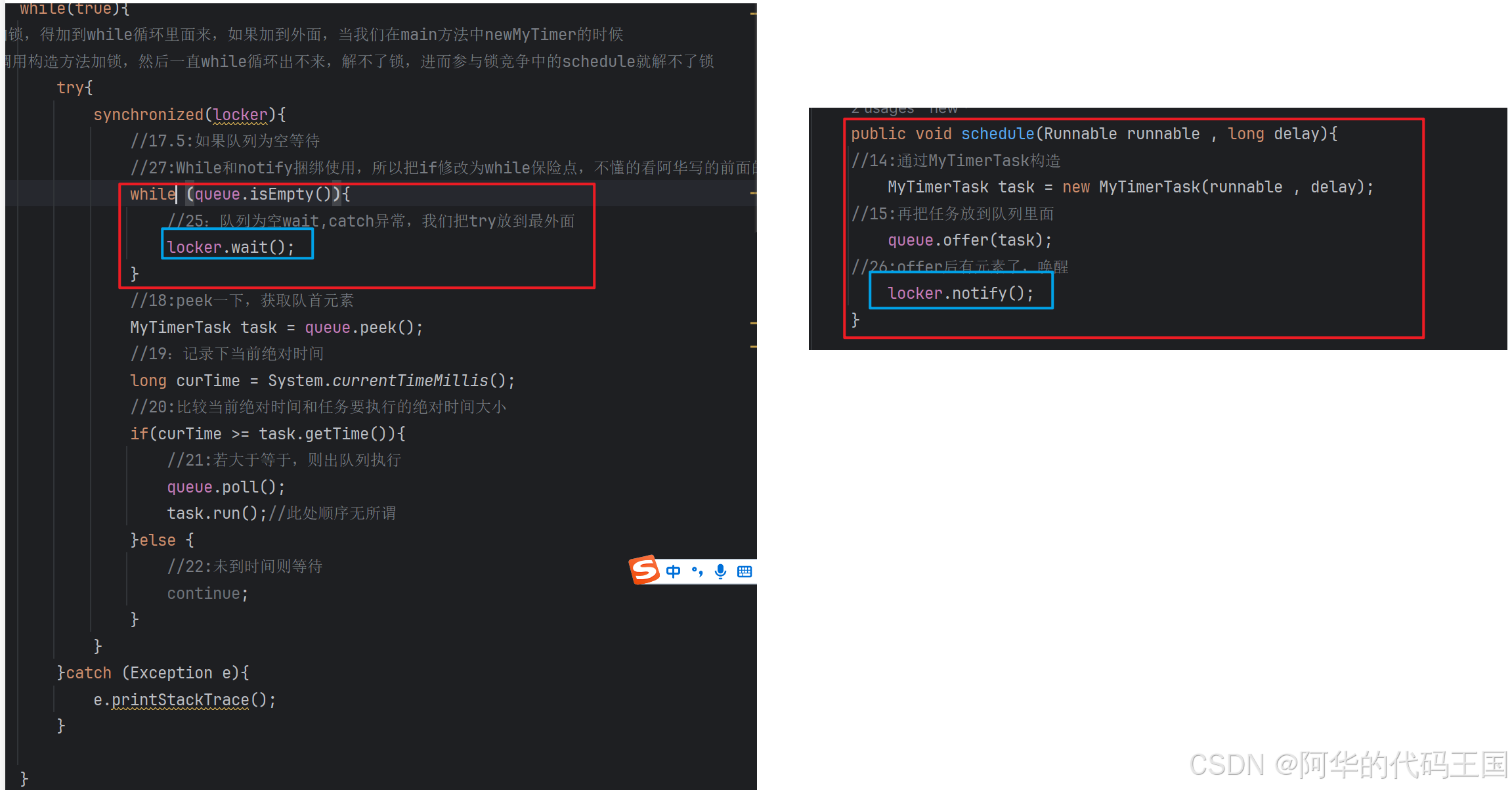 //27:While和notify捆绑使用,所以把if修改为while保险点,不懂的看阿华写的前面的文章哈