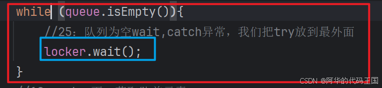 //25:队列为空wait,catch异常,我们把try放到最外面