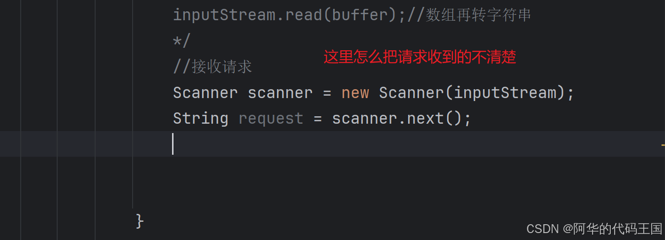 }(读/接受request)用Scanner替代数组转化为字符串,因为有文件流操作,用inputStream来帮助Scanner进行构造