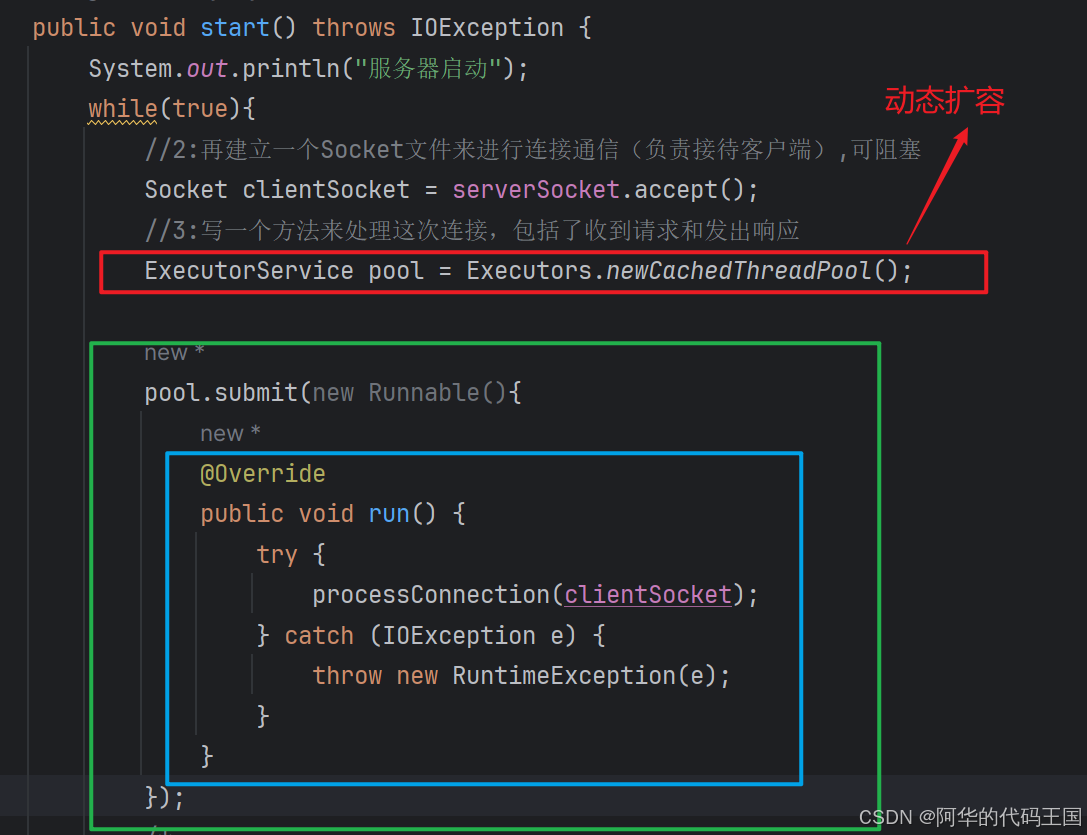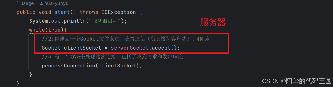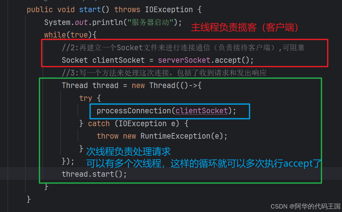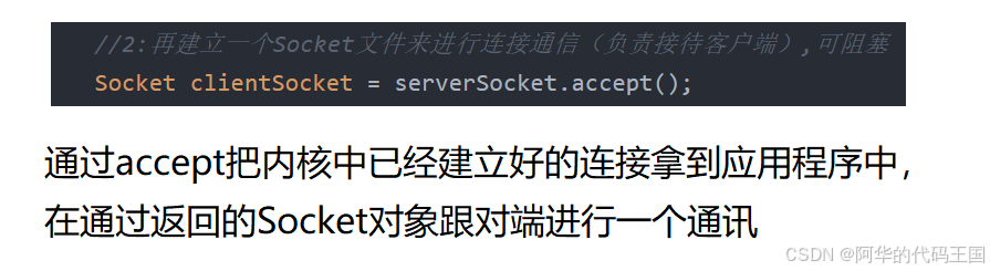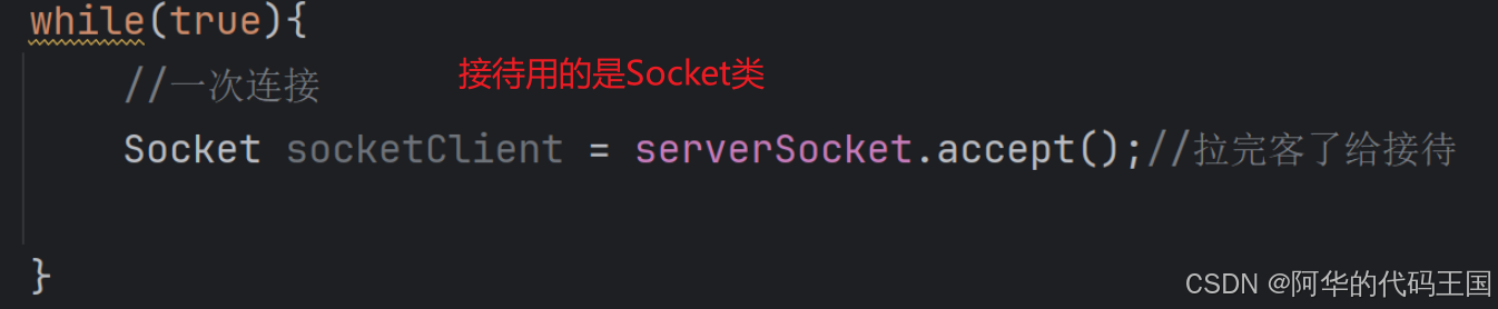 Socket socketClient = serverSocket.accept();//拉完客了给接待