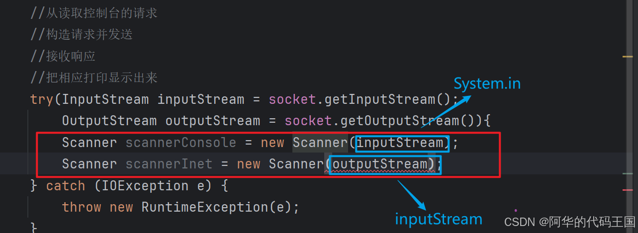 //7:不要去放System.in输入,用(Socket对象)inputStream来帮助Scanner进行构造