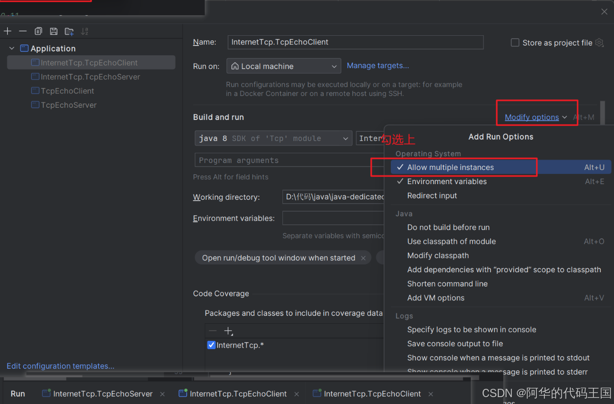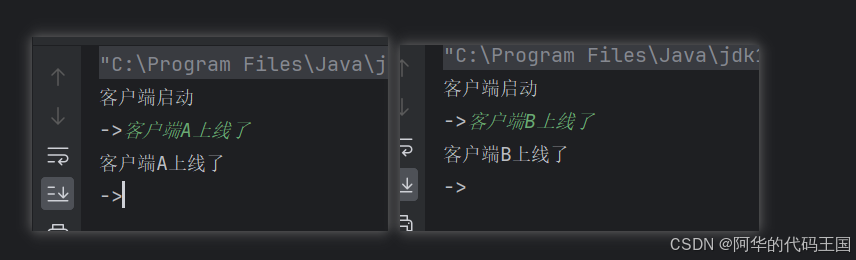 创建两个客户端,让服务器同时对两个服务端进行服务,最后再点运行就会出现两个Client了