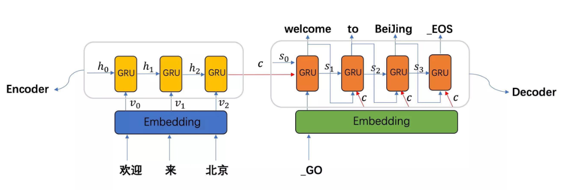 经典 Seq2Seq 模型通常使用 RNN(如 LSTM 或 GRU) 作为编码器和解码器的基础结构。