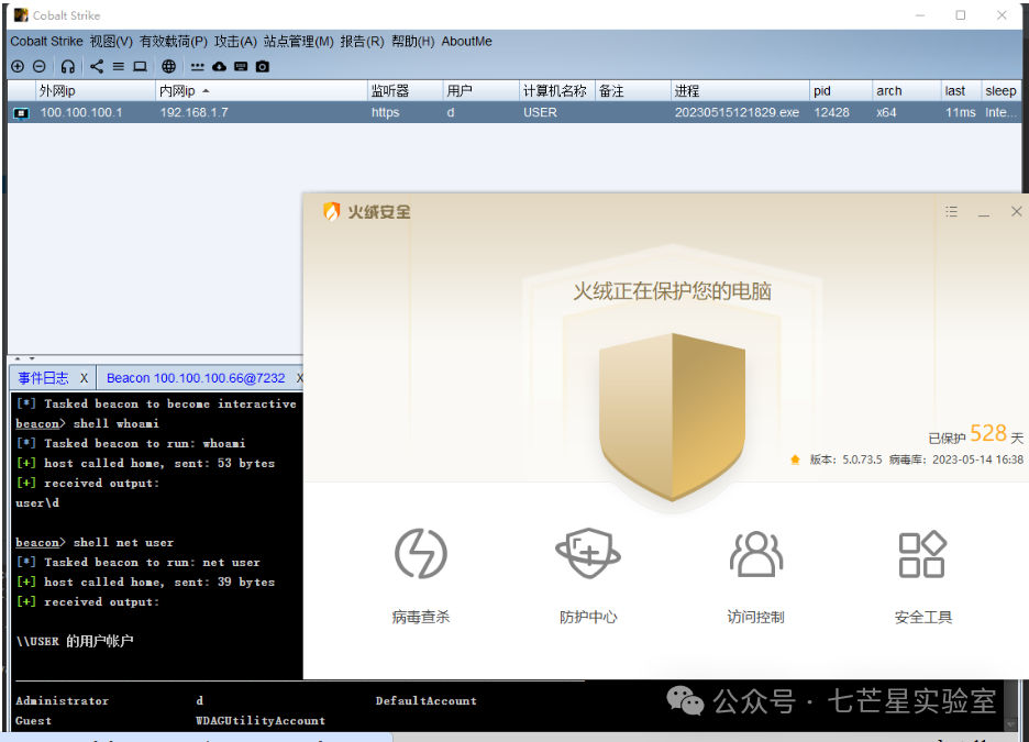 发现火绒把变量名当成静态特征查杀,增加了一些随机特性绕过火绒的静态特征查杀,火绒已经会对进程镂空winlogon.exe进行查杀,但镂空其他进程不会查杀,遇到火绒可以直接使用普通模式的那几个shellcode加载器。更新后无感知上线和执行命令,不过新增用户等高危操作依然不可用,需要结合其它技术