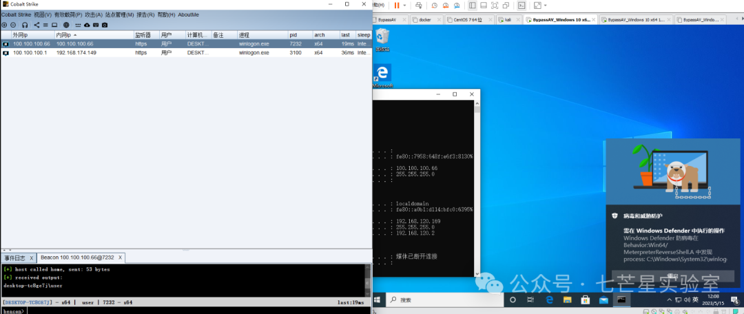 使用进程镂空(傀儡进程)winlogon.exe,Defender仅提示病毒威胁选择重启,但不会主动杀掉镂空的winlogon.exe,实现稳定上线