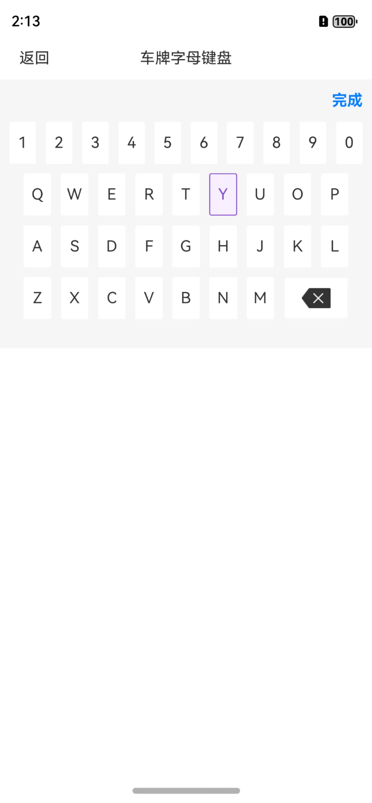 车牌字母键盘和一般的键盘还有很大区别的,大家可以发现,键盘上是少一个字母的,因为I字母具有混淆性,所以这个字母是不在车牌键盘内的。