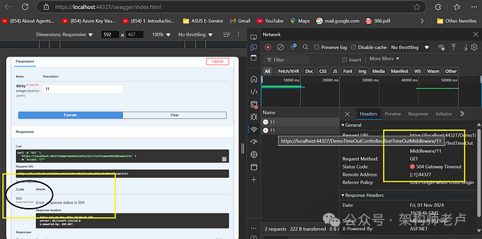 在 Invoke Method 中,我们设置了指定超时的 Cancellation Token。当达到超时限制时,HttpContext.RequestAborted 中的 CancellationToken 会将 IsCancellationRequested 设置为。Abort() 不会在请求中自动调用,因此应用程序可能仍会生成成功或失败响应。如果应用程序不处理异常并生成响应,则默认行为是返回状态代码 504。true