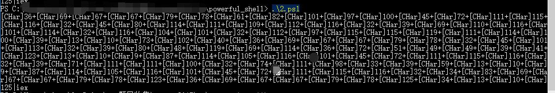 后来发现后面用了管道符,iex将字符串当powershell执行,你输出最后的那个${;}就知道