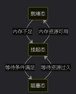三态模型的状态转换可以用以下流程描述: