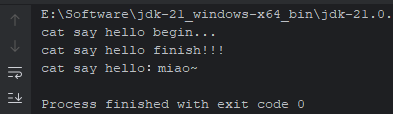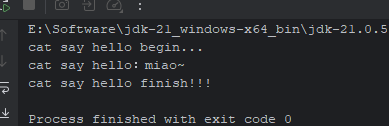 System.out.println("cat say hello:miao~");