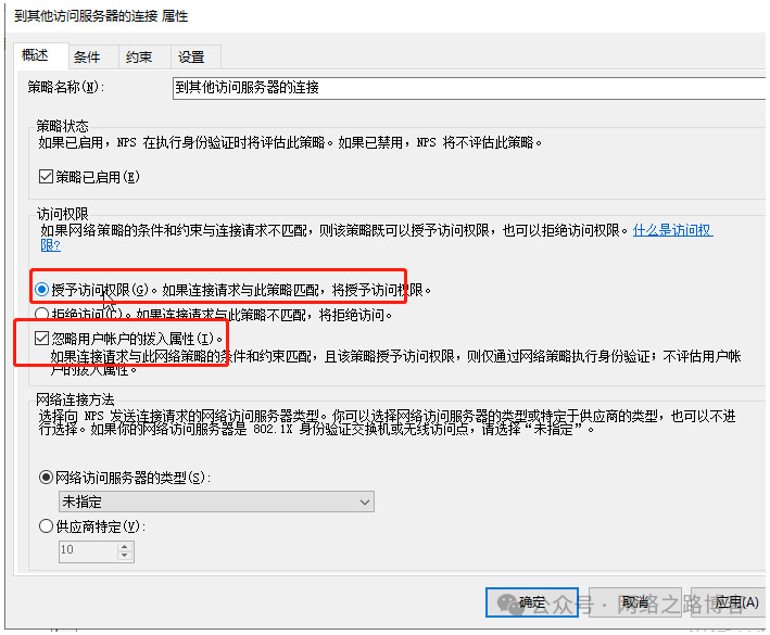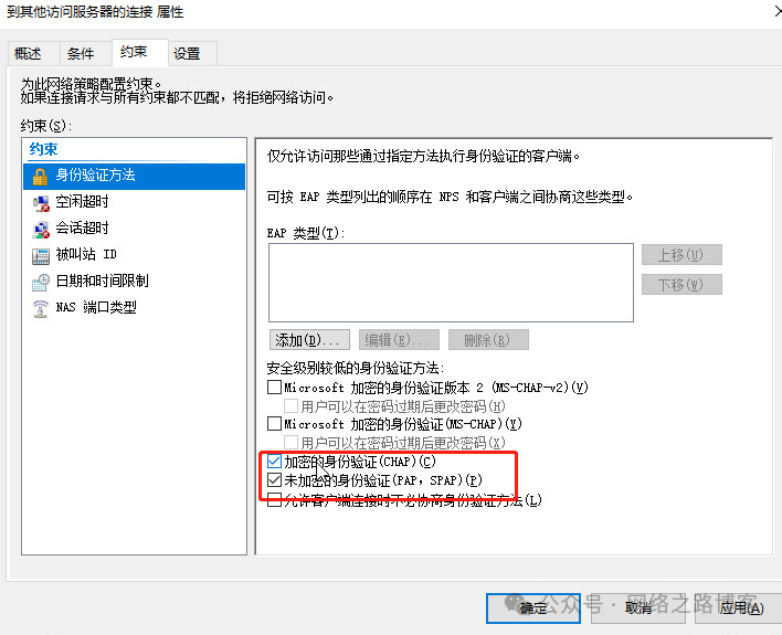 首先授予权限,并且忽略用户属性,然后约束里面选择PAP与CHAP认证。