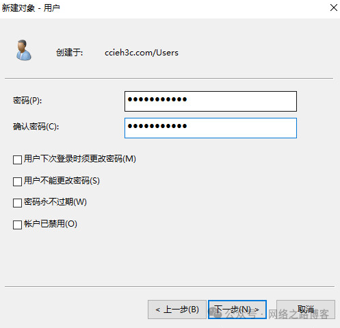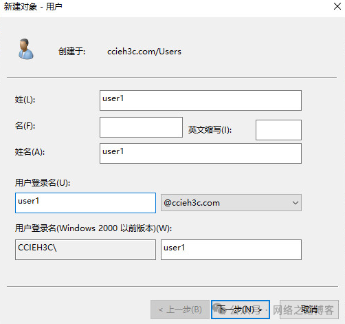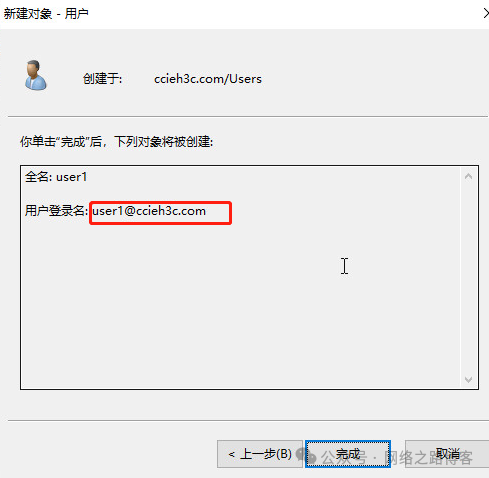 输入密码, 然后下一步完成。可以看到登录名是有后缀的。