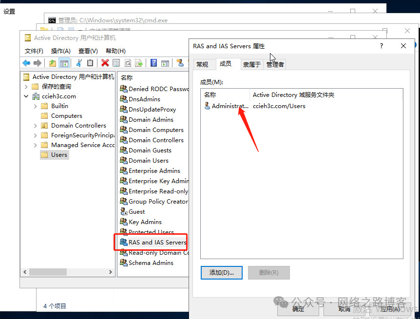 首先是加入了域的,但是这里要注意一个事情,比如我们用的xxx用户加入域跟登陆的,那么这个账户需要加入一个组,加入RSA and IAS Servers。这边用的是Administrator登陆