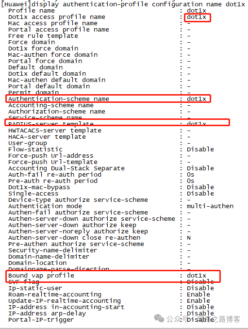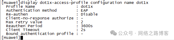 display authentication-profile configuration name dot1x:查看认证模板的参数