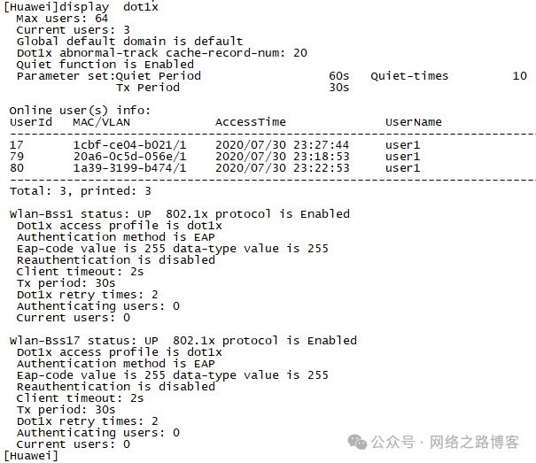 display dot1x:查看dot1x的认证情况