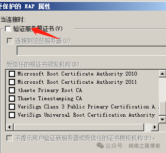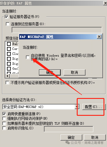 这里注意要选择PEAP,默认是智能卡或其他证书,也就是TLS