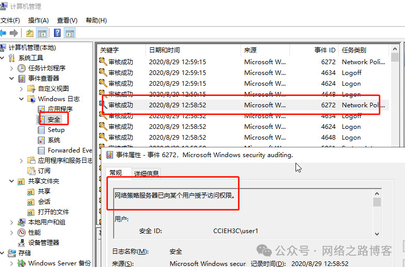 关于域集成环境的话,查看日志还是在NPS的安全日志里面,所有的认证信息都是由他来审核,所以排错还是在这。另外这里说下,域控集成环境,只是