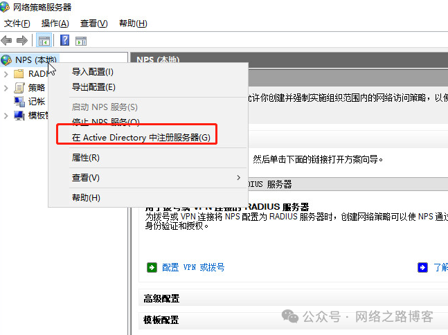记得,这是在域控操作,这样的话,NPS服务器才有权限跟域控进行交互。然后我们回到NPS服务器继续操作。