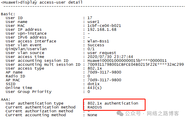 display access-user detail :查看用户的详细情况