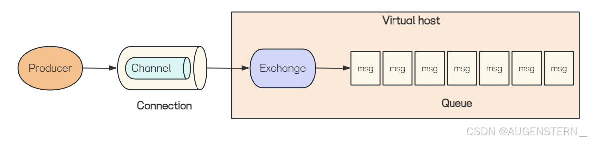 理解了上⾯的概念之后, 再来回顾⼀下这个图, 来看RabbitMQ的⼯作流程