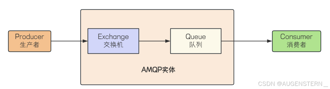 AMQP(Advanced Message Queuing Protocol)是⼀种⾼级消息队列协议, AMQP定义了⼀套确定的消息交换功能, 包括交换器(Exchange), 队列(Queue) 等. 这些组件共同⼯作, 使得⽣产者能够将消息发送到交换器. 然后由队列接收并等待消费者接收. AMQP还定义了⼀个⽹络协议, 允许客⼾端应⽤通过该协议与消息代理和AMQP模型进⾏交互通信