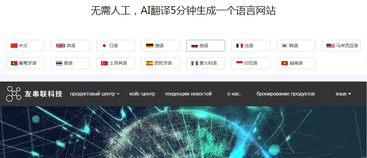 AI结合建站,还能帮你一键智能翻译多语言,以前做好中文页面,要再多做一个英文页面,最起码要再出一倍的建站费用,现在用AI翻译,轻松帮你做好其他国家语言网站,只需花一份钱。你说省钱省心不?!