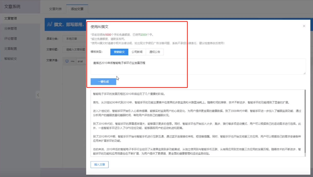 而AI在文章内容创作与优化方面堪称得力助手。借助ChatGPT等先进工具,只需输入主题、关键词、风格要求等指令,便能快速生成逻辑清晰、文采斐然的博客文章、产品详情页文案、新闻资讯等各类内容,大大节省创作时间与人力成本。