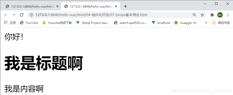 在开发中,往往一些数据确实需要从上层传递到下层:比如在一个页面中,我们从服务器请求到了很多的数据。其中一部分数据,并非是我们整个页面的大组件来展示的,而是需要下面的子组件进行展示。这个时候,并不会让子组件再次发送一个网络请求,而是直接让大组件(父组件)将数据传递给小组件(子组件);