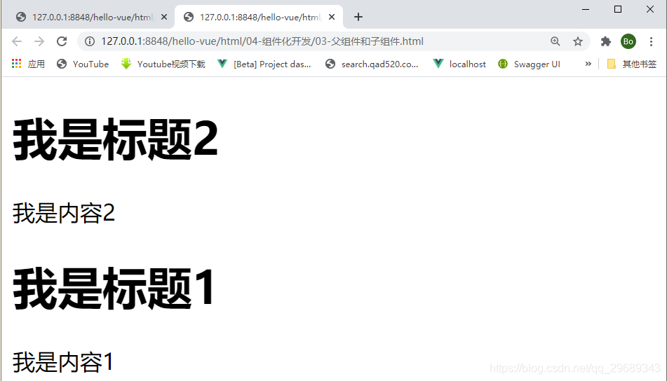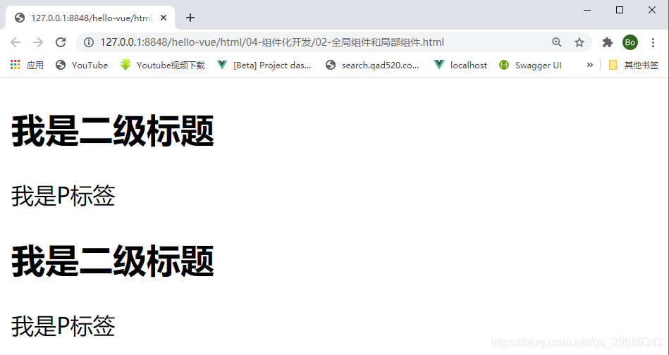 在上面《组件化的基本使用过程》中我们所使用的就是全局组件,全局组件意味着可以在多个vue的实例下使用;