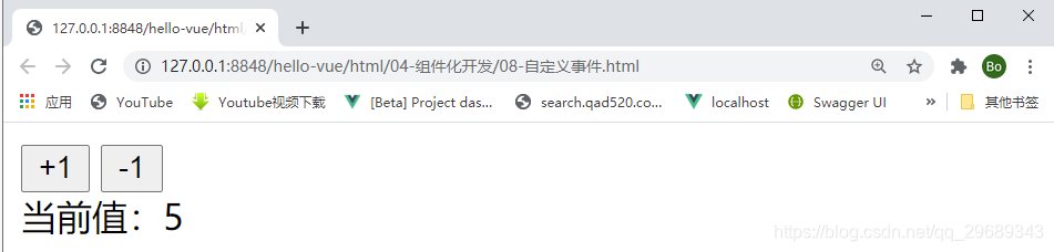 当子组件需要向父组件传递数据时,就要用到自定义事件了;