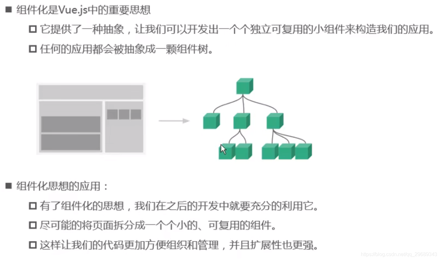 人的大脑处理问题的能力是有限的,当人们面对复杂问题的时候,很难一次性解决,但人的大脑也天生具有将问题拆解的能力,化繁为简,逐个解决,这种复杂问题拆解成多个小问题在程序中的表现就是组件化。在程序开发中,如果我们将一个复杂页面的所有逻辑都放在一起,势必导致逻辑混乱,难以阅读,不利于后续的管理和扩展。但如果我们将页面拆解成一个个小的功能块,每个功能块完成自己独立的功能,且这些功能块能够被应用到其他页面(可复用),那么程序的开发就会非常易于管理和扩展。
