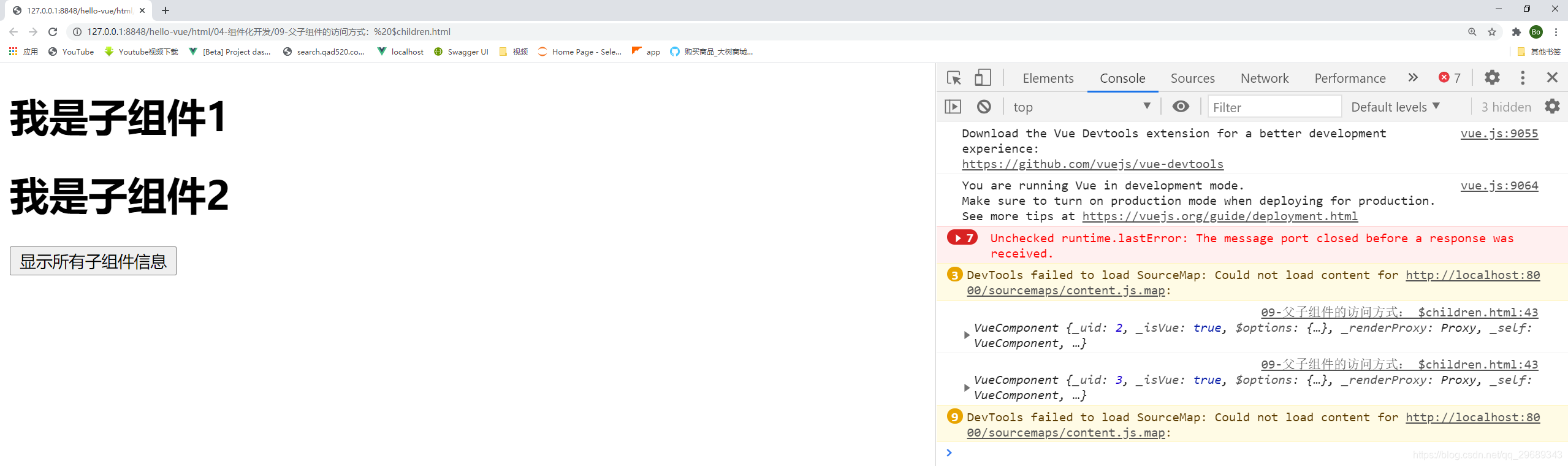 我们这里通过一个遍历,取出所有子组件的message状态,不常用!