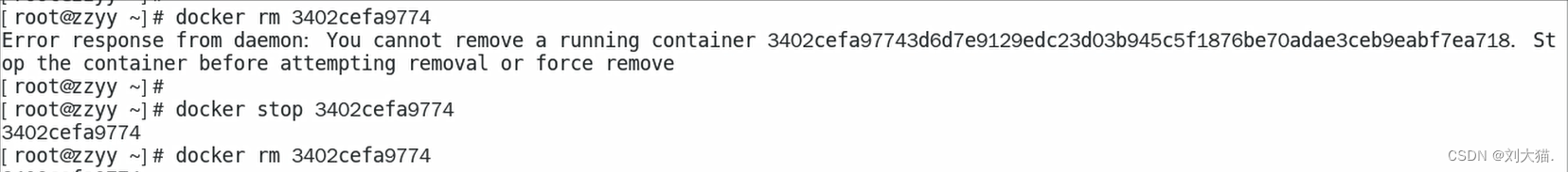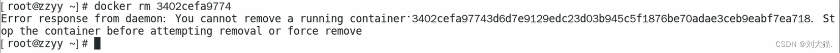 如果不写-f,那么如果改容器服务正在运行,那么无法删除,报错如图1,而输入-f,则会执行强制删除。