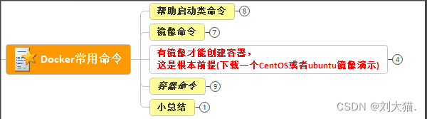 3.《docker基础篇:3.Docker常用命令》包括帮助启动类命令、镜像命令、有镜像才能创建容器,这是根本前提(下载一个CentOS或者ubuntu镜像演示)、容器命令、小总结