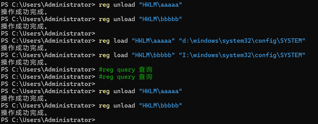 reg load "HKLM\bbbbb" "I:\windows\system32\config\SYSTEM"