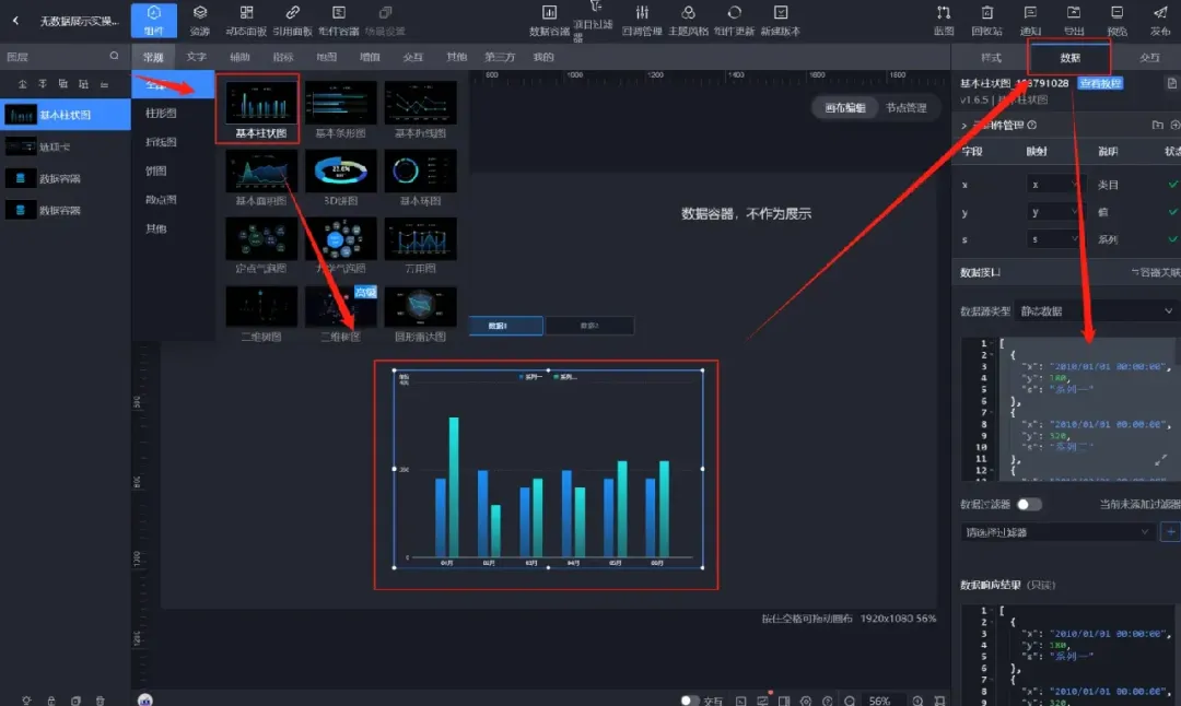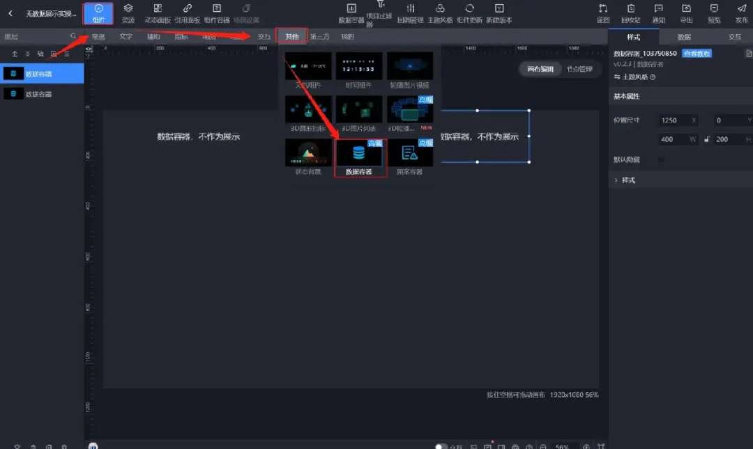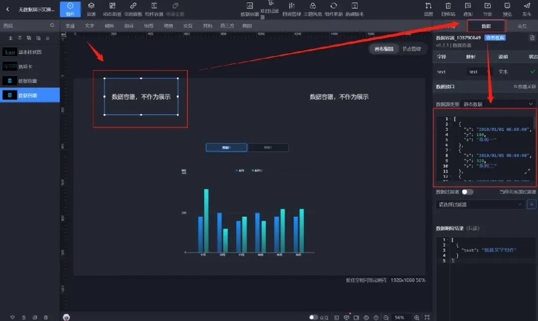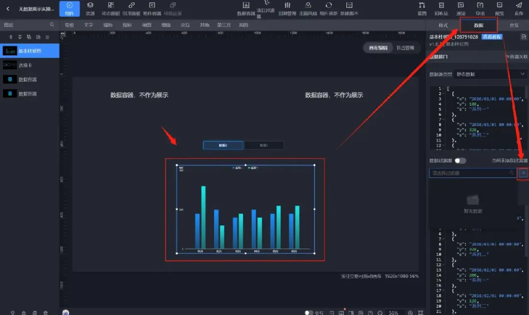 【组件】→【其他】→添加两个【数据容器】。