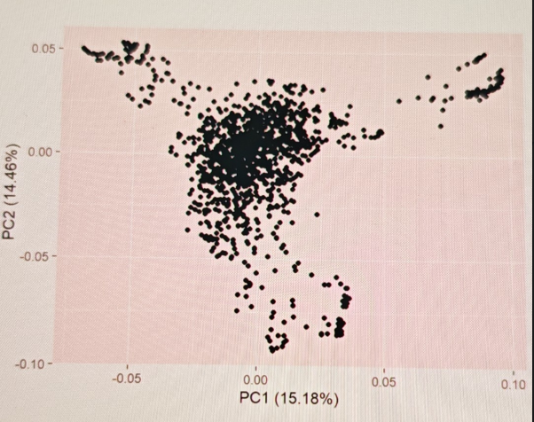 大家好,我是邓飞,最近星球的小伙伴问了一个问题,PCA图显示没有明显的分层,K值也没有明显拐点,GWAS分析还用考虑吗?PCA图如下:
