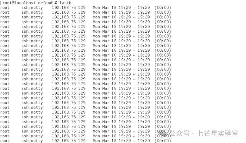 同时关于这个问题我们也可以通过lastb来获取登录失败的IP地址: