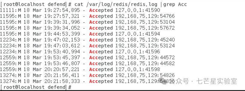 随后在Redis日志中进行正则匹配检索链接记录,从而找到IP地址192.168.75.129