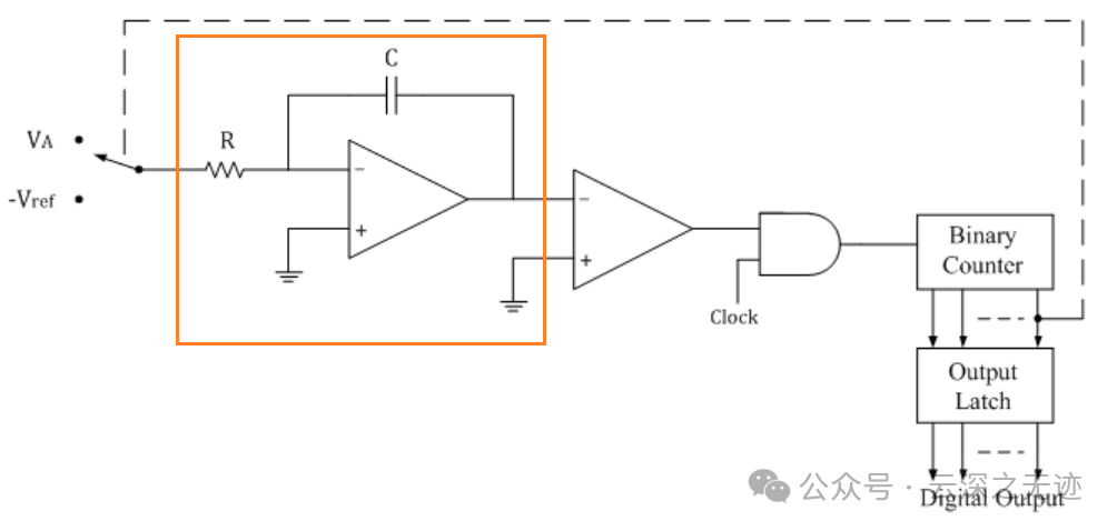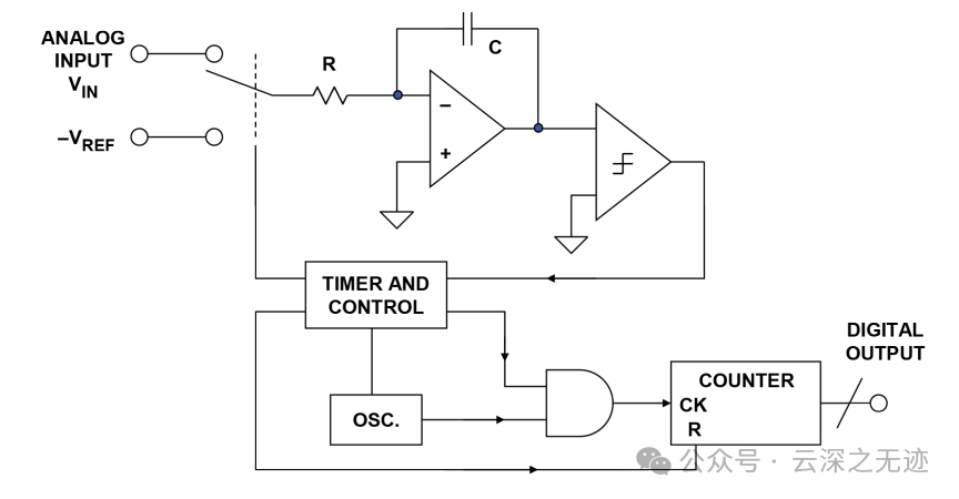 需要一个计数器: 用于测量积分时间,计数器的精度决定了转换的精度。