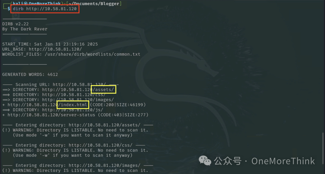 扫描网站目录和页面,发现/assets/目录、/index.html页面。