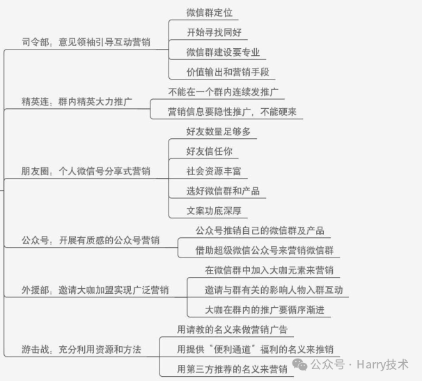 在建立微信群的过程中,可以采取多种策略和方法来实现营销目标。其中,可以借鉴军事战略的概念,将微信群运营分为不同的部门和战略,以实现更加有效的营销。