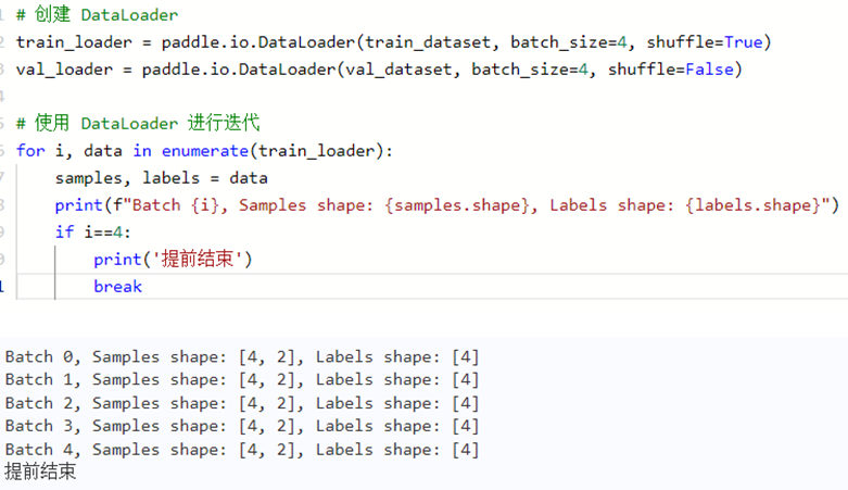 定义好数据集后,惯用的做法是使用 paddle.io.DataLoader 来加载数据,需要把数据集转换为DataLoader类型