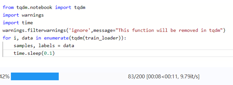 在实际项目中,为了运行过程更直观,会使用tqdm工具显示数据集的加载进度