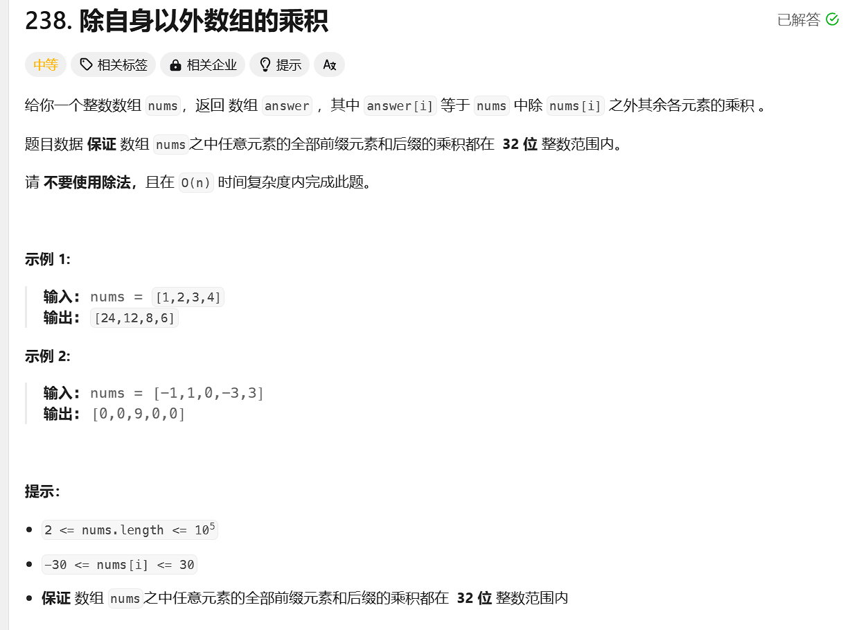 }题目链接:除自身以外数组的乘积 题目描述:
