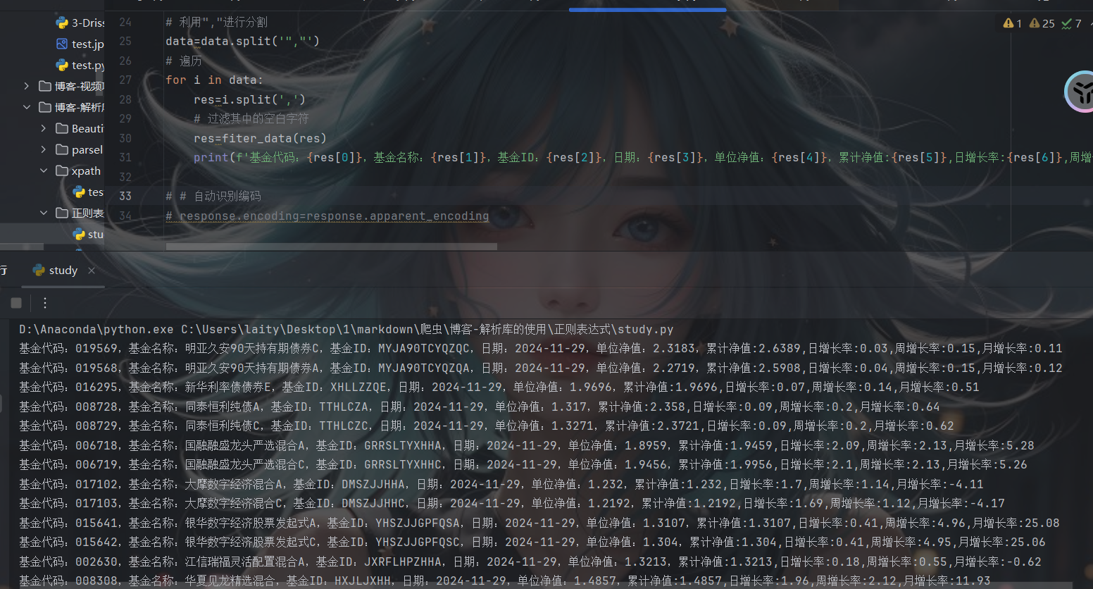 正则表达式是一种用于匹配字符串中字符组合的模式。不管是在Linux,windows系统中,亦或是python,javascript,go等等语言中,都有可能用到正则表达式来匹配字符串。它就像是一种高级的文本搜索和处理工具,可以帮助你在大量文本中快速找到符合特定规则的内容,或者对文本进行复杂的替换、提取等操作。例如,你可以使用正则表达式来验证用户输入的电子邮件地址是否符合格式要求,或者从一段网页源代码中提取所有的链接。今天我们就是从爬取到东方财富网的数据通过正则表达式来进行分别提取出来。