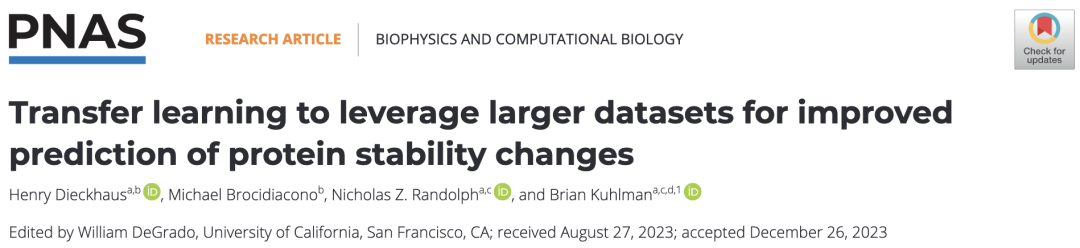 3. Dieckhaus, H., Brocidiacono, M., Randolph, N. Z., & Kuhlman, B. (2024). Transfer learning to leverage larger datasets for improved prediction of protein stability changes.Proceedings of the National Academy of Sciences,121(6), e2314853121.