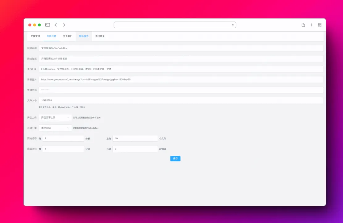 总之,FileCodeBox 是一个功能强大且易于使用的文件快递柜项目,适合各种用户需求。无论是个人用户还是企业用户,都可以通过 FileCodeBox 实现高效、安全的文件分享。通过一键部署和自由拓展功能,用户可以根据自己的需求,灵活地搭建和扩展系统。FileCodeBox 的匿名分享和管理面板功能,使得文件管理更加便捷和高效。